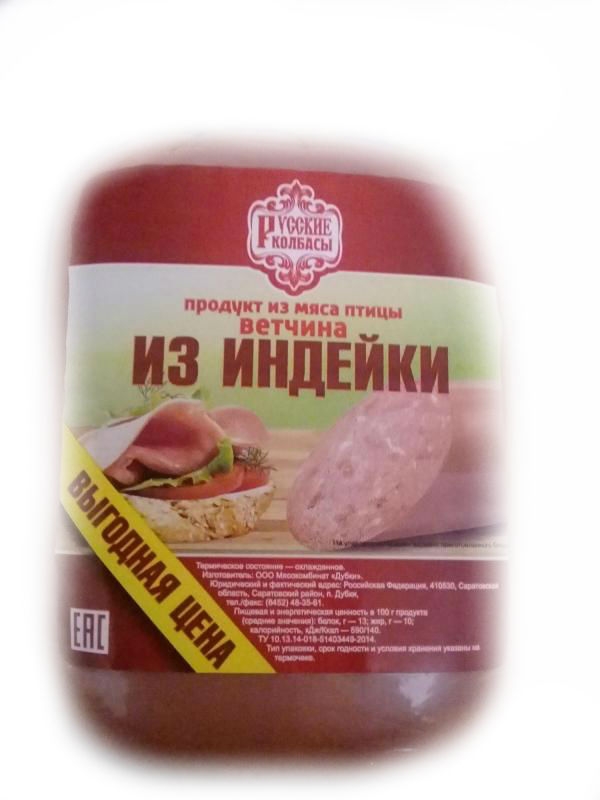 Ветчина РУССКИЕ КОЛБАСЫ из индейки 500 г