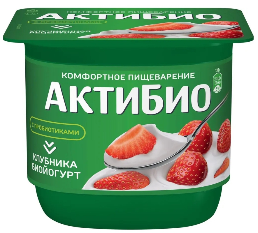 Биойогурт АКТИБИО с клубникой 130 г 2,9%