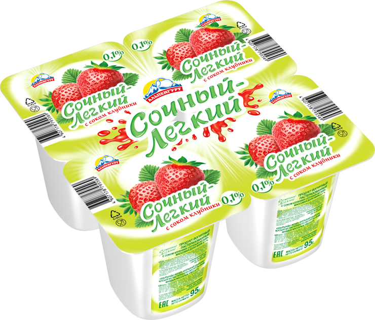Йогуртный продукт АЛЬПЕНГУРТ "Сочный-Легкий" с соком клубники 95 г 0,1%