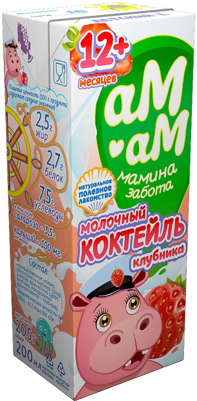 Молочный коктейль АМ-АМ для детей с 12 месяцев с клубникой 200 мл 2,5 %