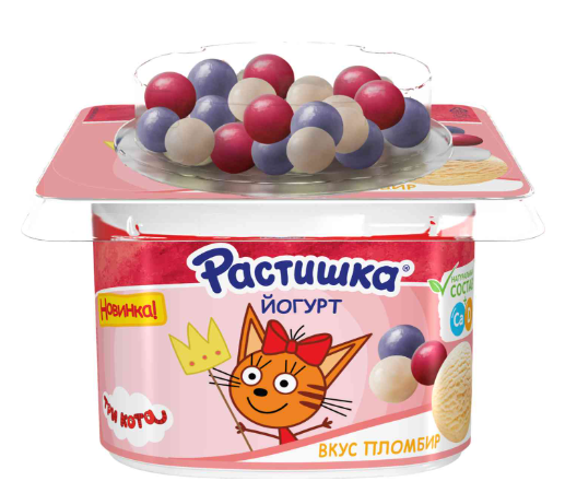 Йогурт РАСТИШКА пломбир с хрустящими шариками с ягодным вкусом 116 г 3%