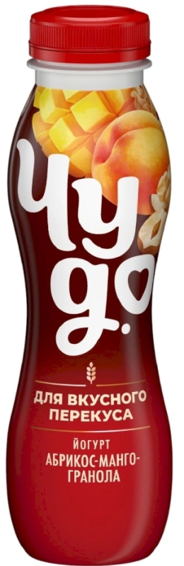 Йогурт питьевой ЧУДО "Абрикос-манго-гранола" 260 г 2,2%.