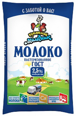 Молоко КУБАНСКИЙ МОЛОЧНИК пастеризованное 2,5% 900 мл пленка