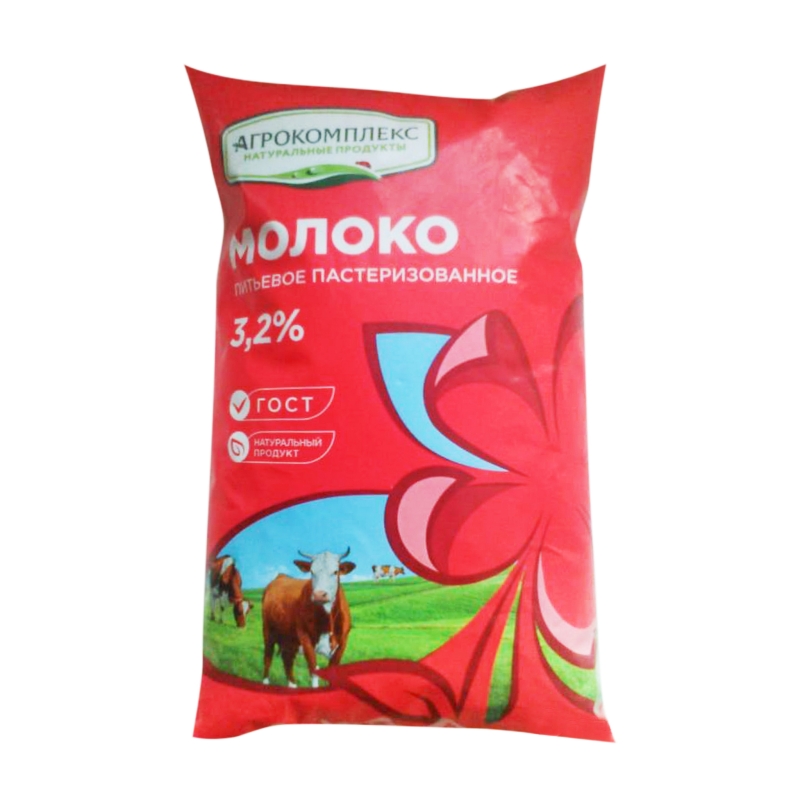 Молоко АГРОКОМПЛЕКС пастеризованное 900 мл 3,2% пленка
