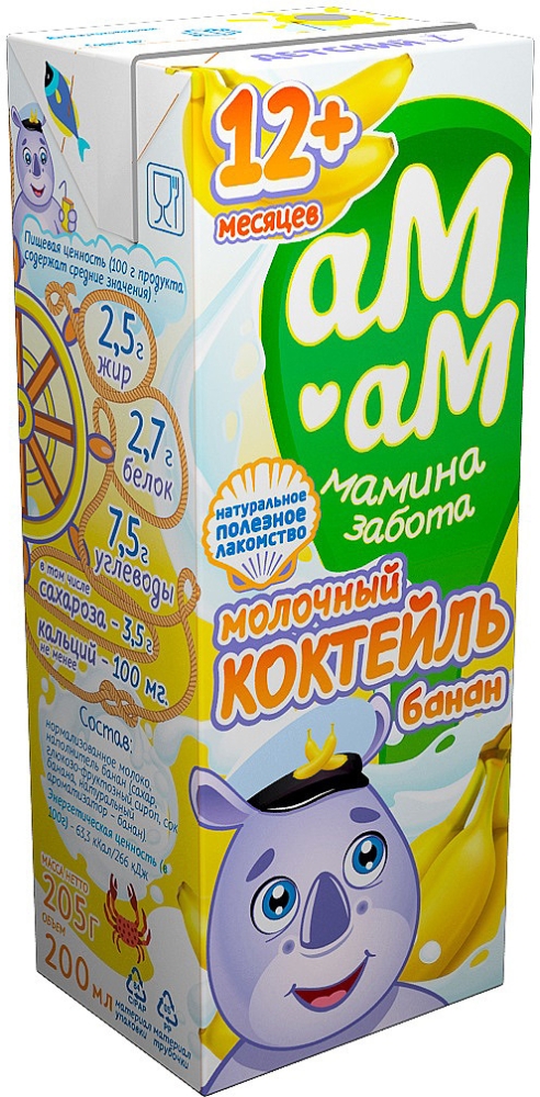 Молочный коктейль АМ-АМ для детей с 12 месяцев с бананом 200 мл 2,5%