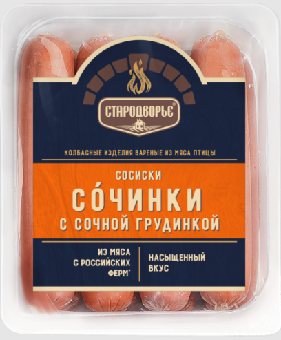 Сосиски СТАРОДВОРЬЕ "Сочинки" с сочным окороком 400 г