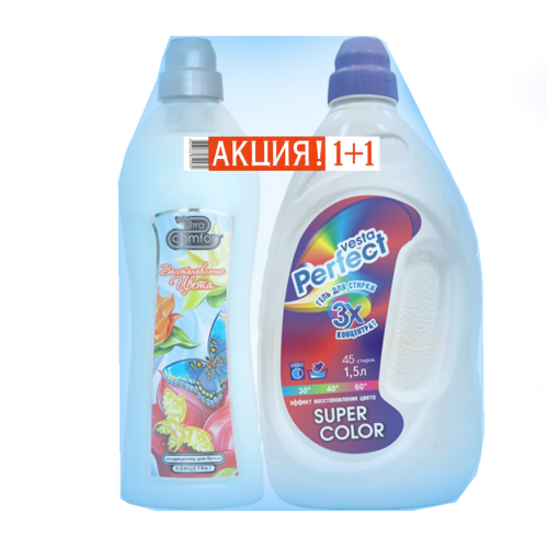 Гель для стирки VESTA "Perfect. Super Color" для цветного белья 1,5 л + кондиционер 1 л