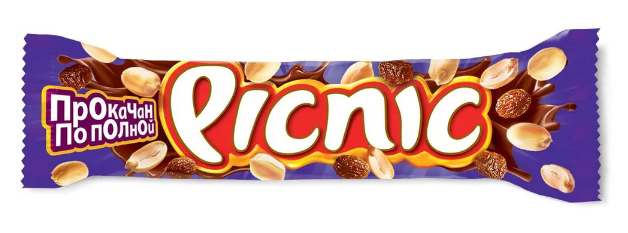 Батончик PICNIC с арахисом и изюмом в молочном шоколаде 38 г