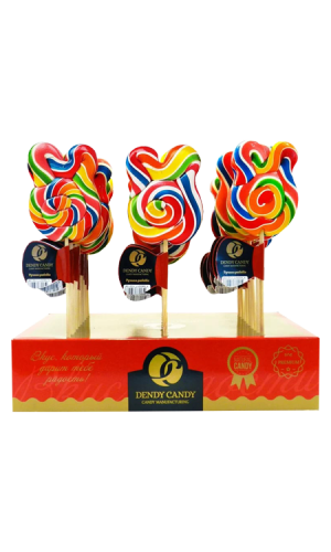 Состав: сахар, патока, вода питьевая, крем тартар, ароматизатор идентичный натуральному, пищевой краситель: красный (Е124), розовый (Е-127), желтый(Е-102), оранжевый (Е-130), зеленый Е 133+Е102), синий (Е-133), фиолетовый (Е133+Е124).