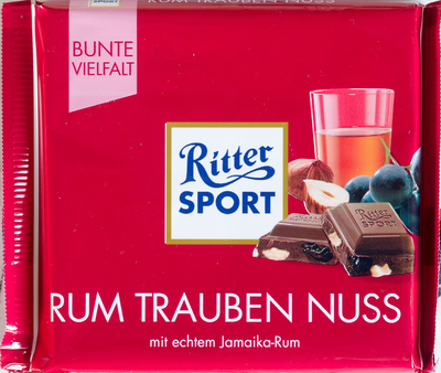 Шоколад RITTER SPORT молочный с ромом, изюмом и орехом 100 г