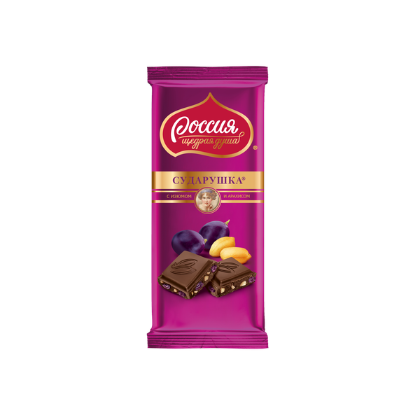 Шоколад РОССИЯ - ЩЕДРАЯ ДУША "Сударушка" молочный с изюмом и арахисом 82 г