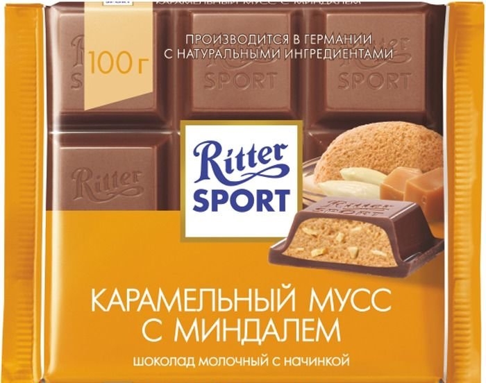 Шоколад RITTER SPORT молочный карамельный мусс с миндалем 100 г