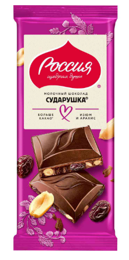 Шоколад РОССИЯ — ЩЕДРАЯ ДУША! "Сударушка" молочный с изюмом и арахисом 75 г