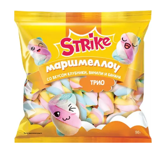 Маршмеллоу STRIKE "Trio" со вкусом клубники, ванили и банана 90 г