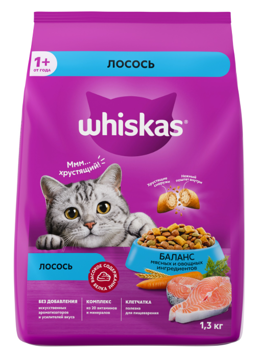 WHISKAS "Вкусные подушечки" с паштетом из лосося 1.3 кг