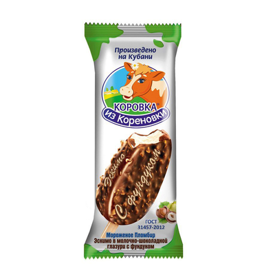 Мороженое КОРОВКА ИЗ КОРЕНОВКИ "Эскимо" с фундуком 70 г 15%