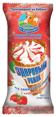 Мороженое КОРОВКА ИЗ КОРЕНОВКИ "Здоровый рожок" с клубничным джемом 120 г 15%